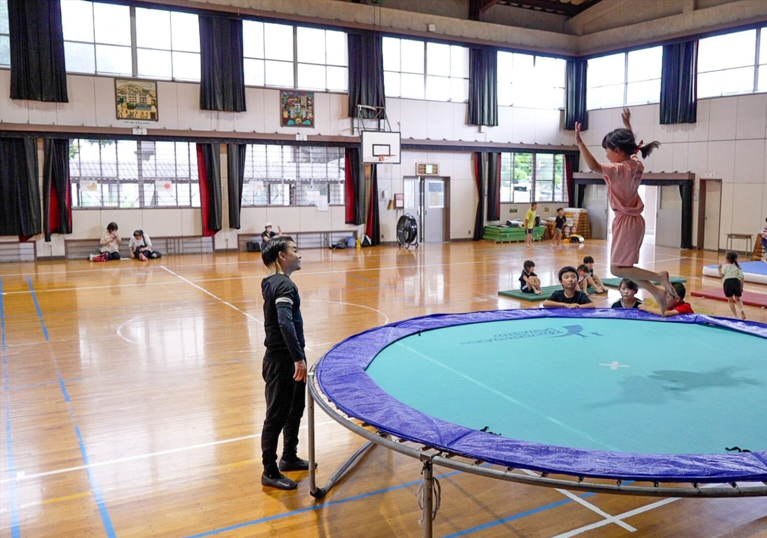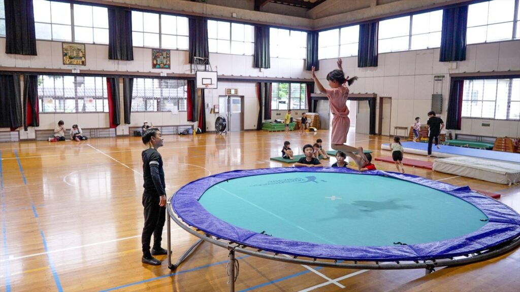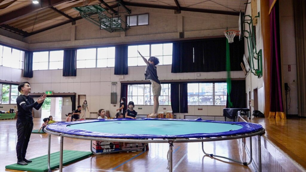 小学生を対象にトランポリン・マット運動・鉄棒や跳び箱などの器械運動を中心とした体操指導を行っており、スポーツクラブの運営受託も行っています。